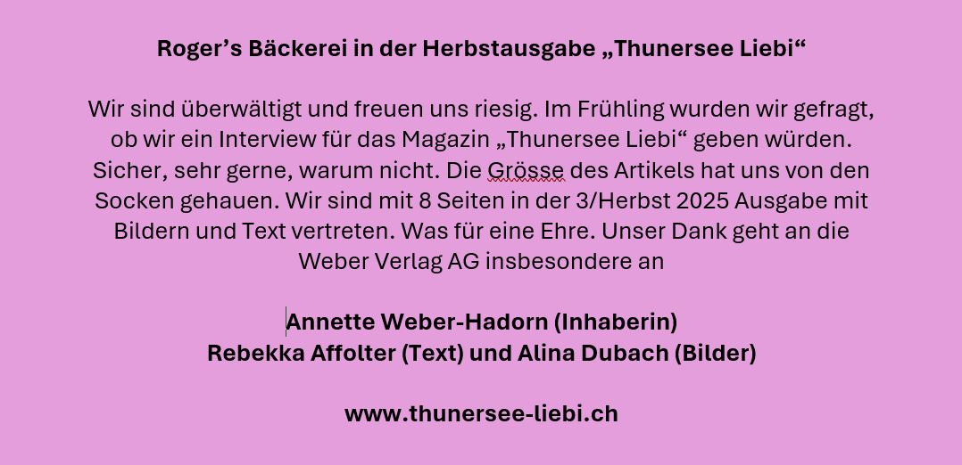 Vom Mehl bis zum fertigen Produkt stelle ich alles selber her. Ich bin zuständig für den Verkauf. Da bin ich in meinem Element und es macht mir Spass. Roger's Bäckerei "anno dazumal" Roger Meyer